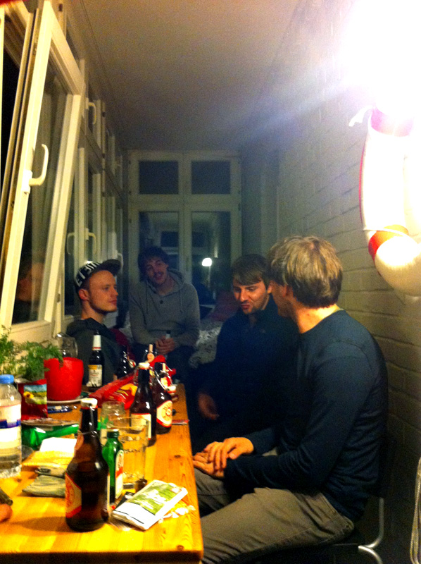 Da kann ich mich dann doch mit anfreunden und die Essenz dieses Satzes wird mir spätestens hier in Stuttgart wieder vor Augen geführt. Wir sind mittlerweile im Touralltag angekommen, was gut ist, weil "Alltag" in diesem Zusammenhang fast ausschließlich positiv besetzt ist. Das ist das eine, die Tour als Heimat. Das andere sind die wohlbekannten Gesichter, die man auf Tour trifft und in Stuttgart sind das einige. Wir schlafen zum wiederholten Male bei unseren Homies (um beim Tehma zu bleiben) zu Hause (...!). Und da die Homies nicht nur gemeinsam bei "Heisskalt" spielen, sondern auch immernoch getrennt von einander in ihren ursprünglichen Bands "Big Spin" und "On Top Of The Avalanche", bespielen die beiden Letztgenannten heute mit uns gemeinsam das Zwölfzehn. So viele Freunde, so viele Freundesfreunde, das macht die Sache zum Heimspiel und das fühlt sich auch so an. Die Meute singt mit und uns schwahnt, dass hier einige unsere aktuelle Scheibe schon kennen. Später werden sie unserem Merchandise zum Einnahmen-Rekord verhelfen und als wenn das alles nicht schon toll genug wär, fahren wir am Ende des Abends in die Behausungen der Homies, wo die Biervorräte nicht alle werden wollen und wir dürfen uns wohl fühlen - wie zu Hause.